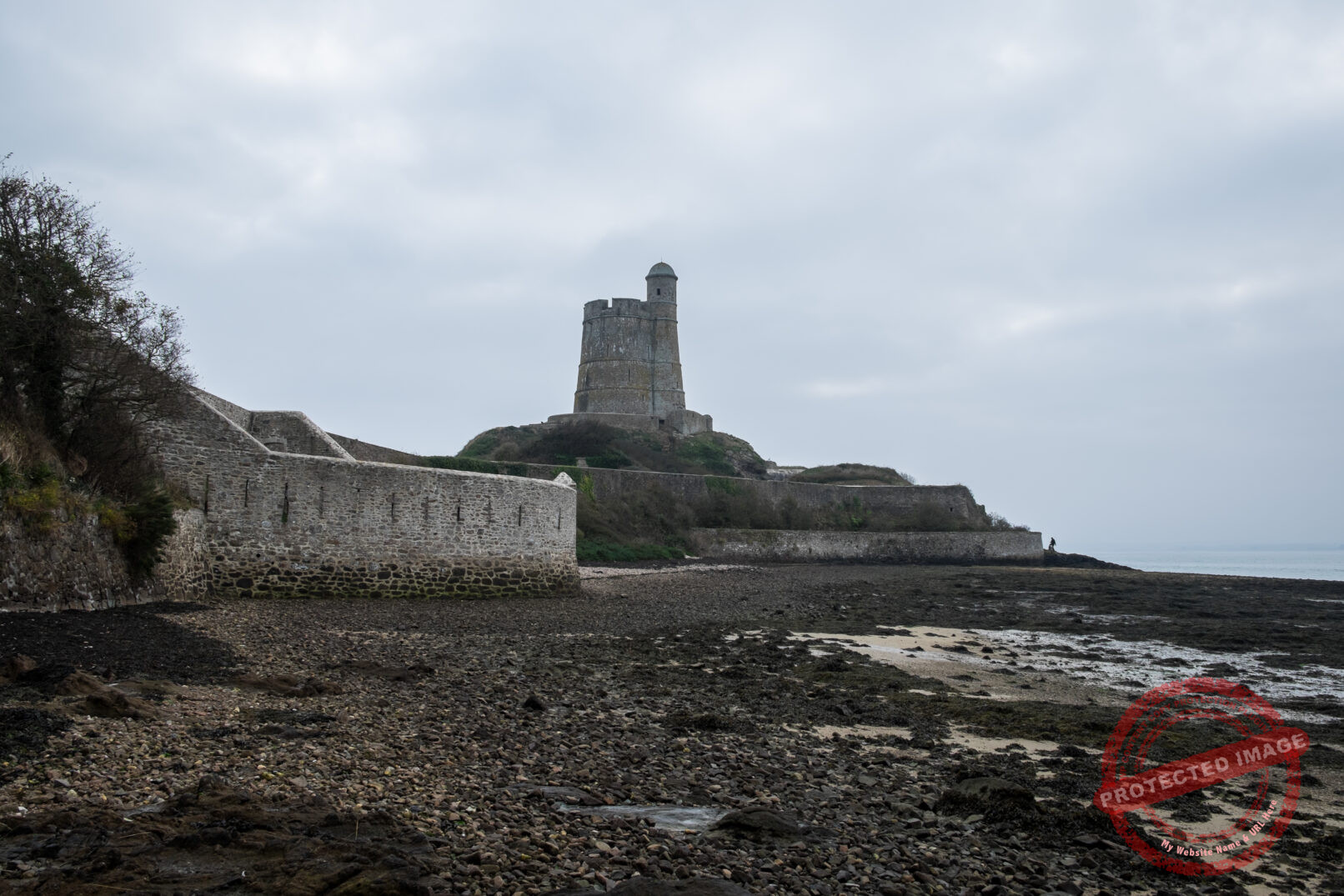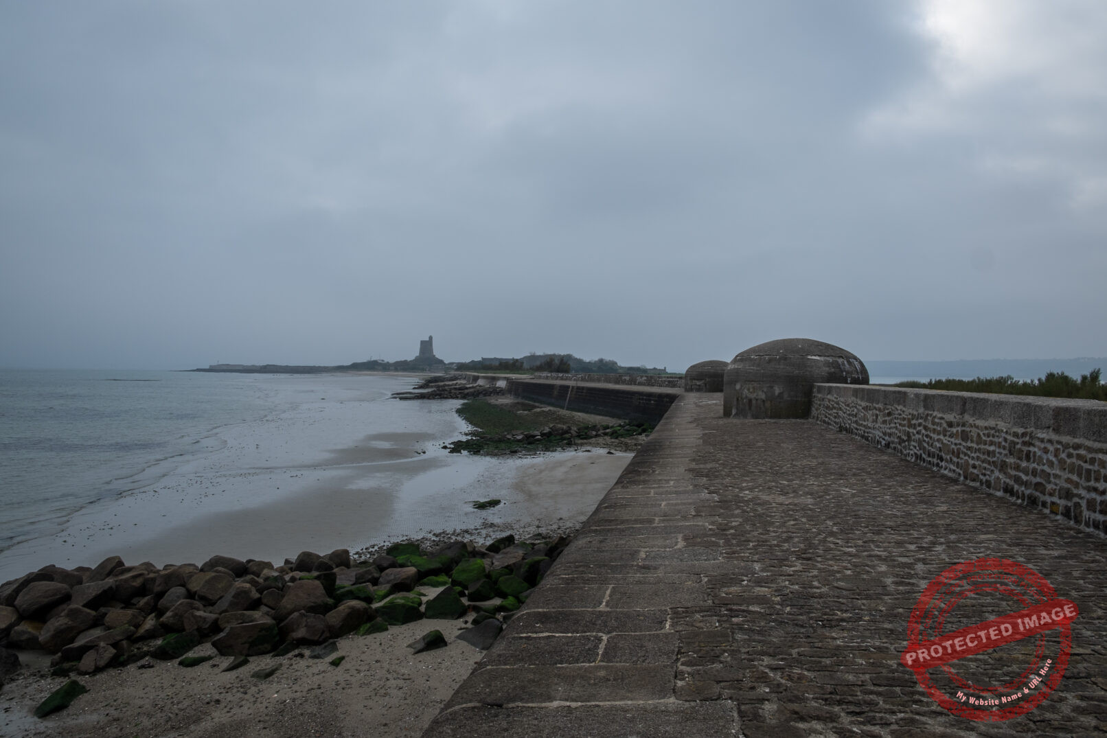 En face, on a l’île de Tatihou que l’on peut accéder à pied lors de la marée basse. On m’a expliqué qu’en été, il y avait un bateau qui permettait de rejoindre l’île, tantôt flottant (à marée haute), tantôt sur roues (à marée basse).