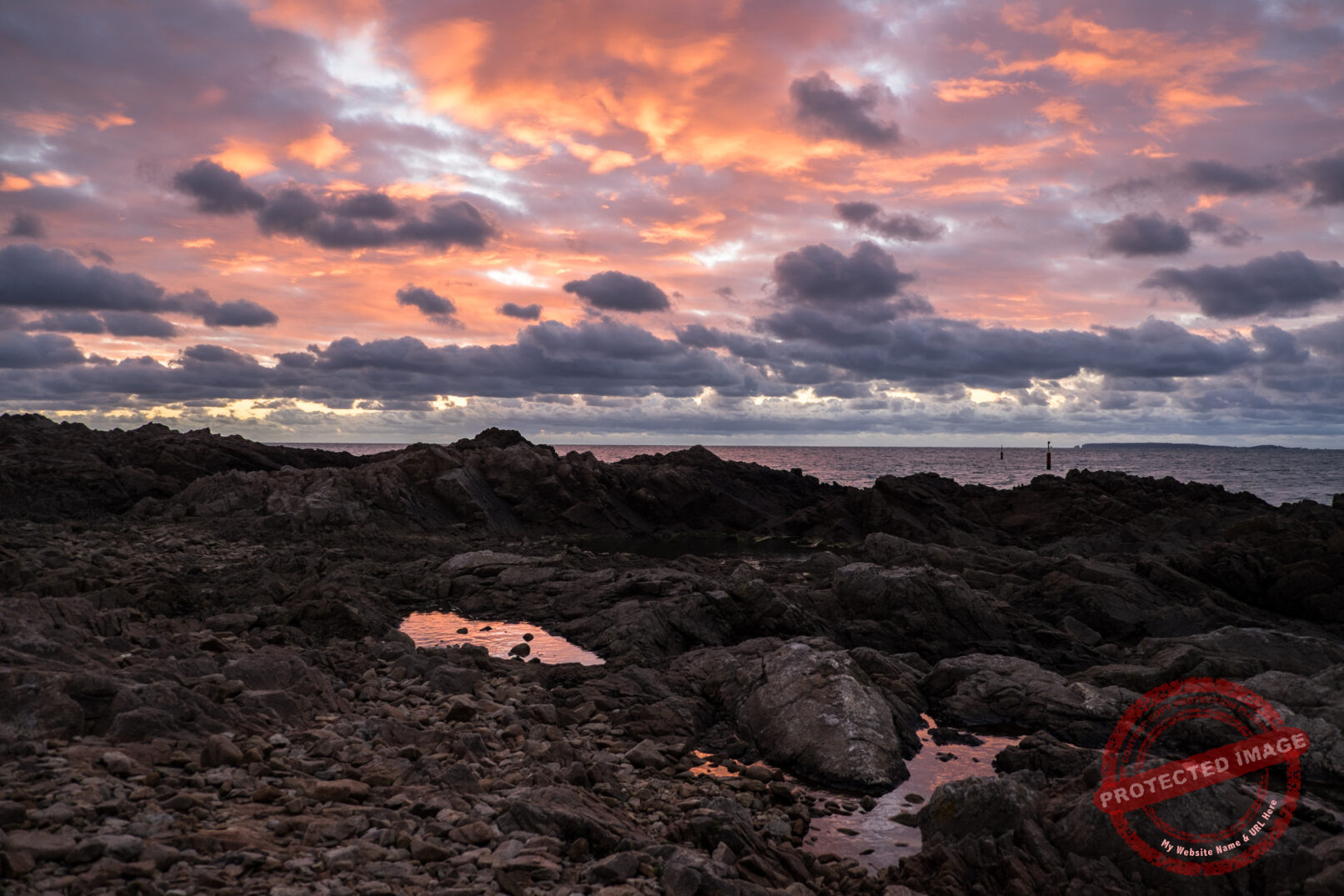 Les autres photos montrent une balade le long du littoral au soleil couchant. La dernière photo est le lever de soleil lors de mon tout premier jour – quel accueil!