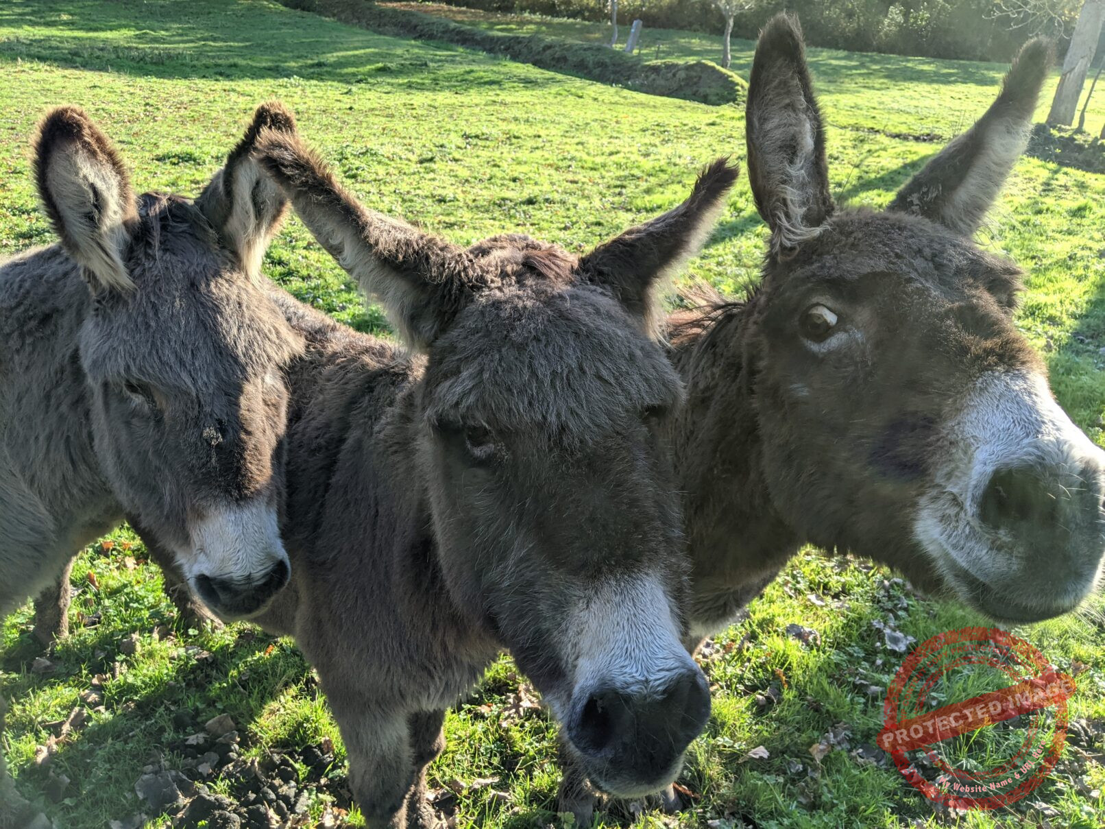 Les ânes se trouvent en face de la maison d’un collègue, qui m’invite souvent à déjeuner chez lui. Qu’il en soit remercié ici. C’est vraiment appréciable de pouvoir prendre une pause déjeuner au milieu de la verdure, au calme, en observant les ânes et les chevaux faire leur vie.